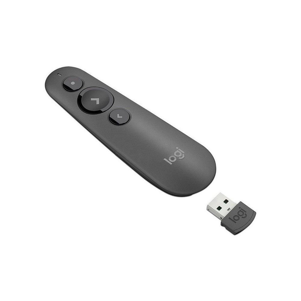 APUNTADOR R500 Logitech Bluetooth/Wireless Receptor USB Compatible Win-Mac Laser Rojo Alcance 20Metros Batería AAA Garantía 1Año-NEGRO