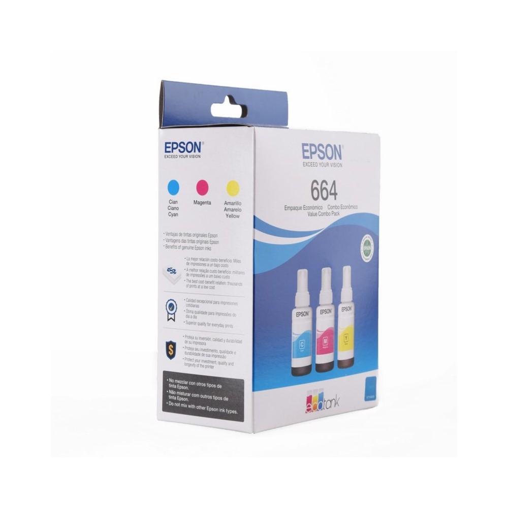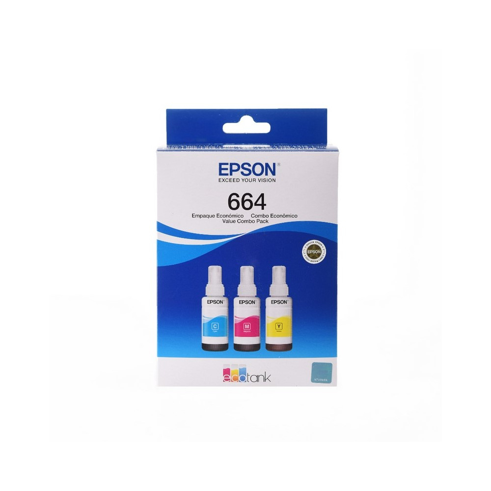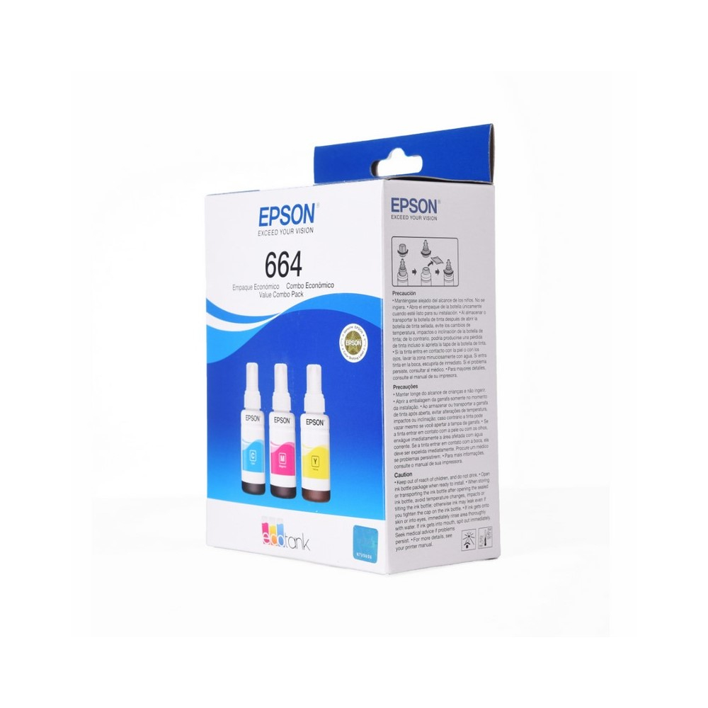 Botella Epson T664520-3P – Multipack 3 botellas Color cyan, magenta y yellow, IMPRESORA EPSON L200/210/350/355/555 (7.500 paginas)