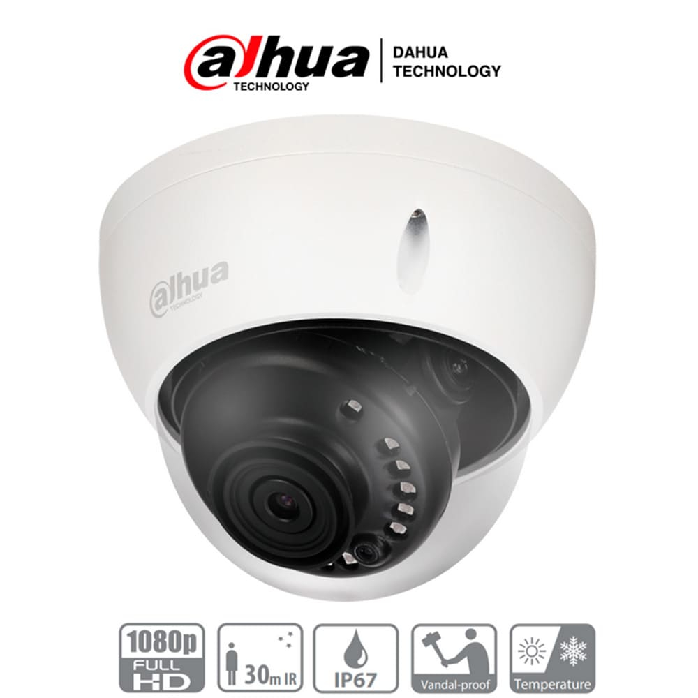 Camara Dahua Domo,2MP, Lente fijo 2,8mm, 4en1 (CVI/TVI/AHD/CVBS), metal, Smart IR30m, IP67 / IK10, 12VDC.