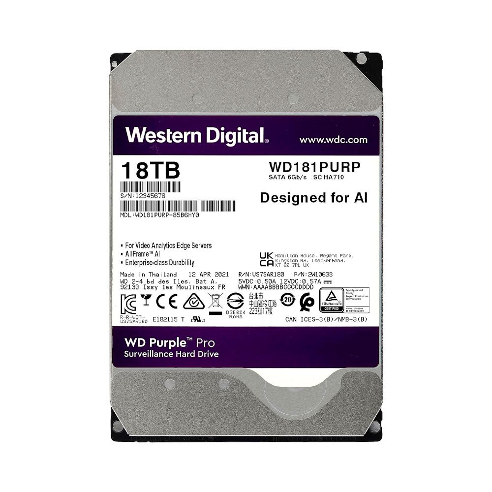 Disco duro para video inteligente WD Purple Pro 18TB- SATA- 3,5 Inch-7200 -512 MB GARANTIA 5 AÑOS