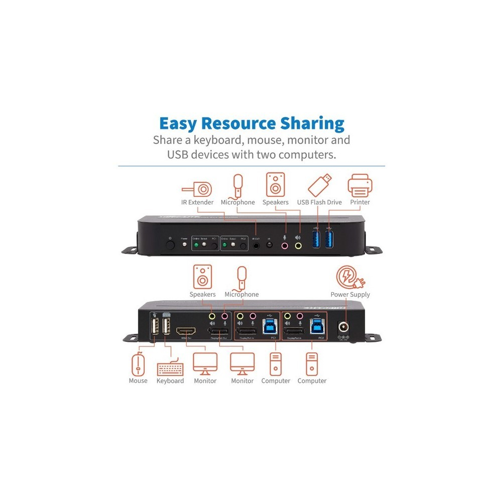 Disponibilidad: AgotadoKVM DisplayPort / USB de 2 Puertos – 4K 60 Hz, HDR, HDCP 2.2, IR, DP 1.4, Compartido de USB, Cables USB 3.0