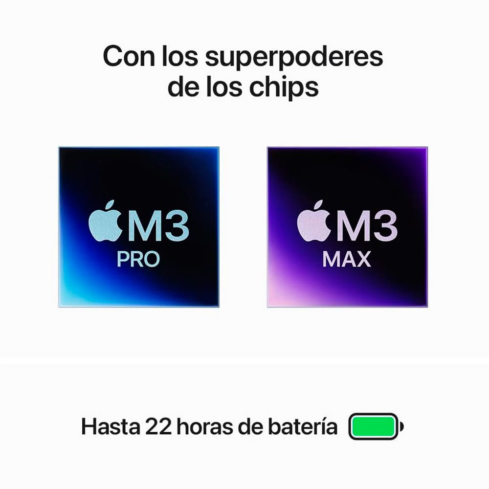 Disponibilidad: AgotadoMacBook Pro de 16 pulgadas: Chip M3 Pro de Apple con CPU de 12 núcleos y GPU de 18 núcleos, 18 GB, 512 GB SSD – Plata