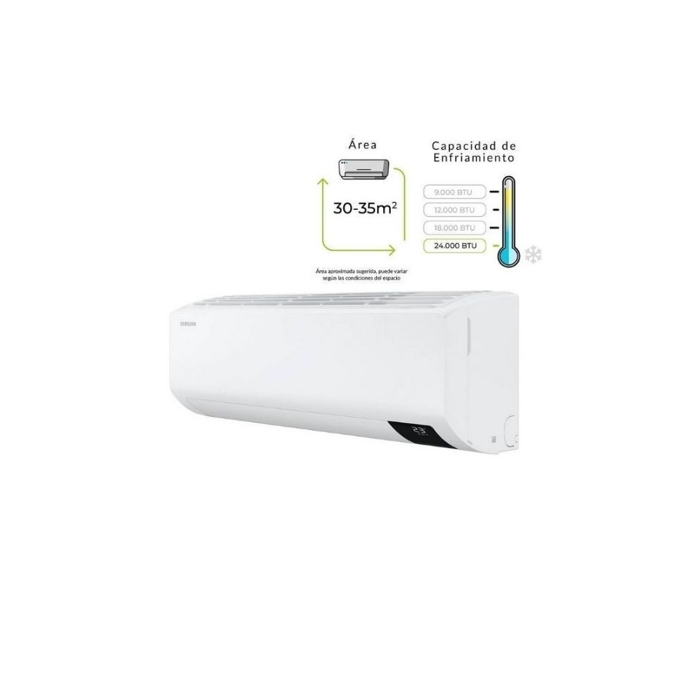 Mini Split Samsung inverter 24.000 Btu/h 220V Premium Advance WiFi Modos Operación: Modo Usuario Unico * Modo Enfriamiento Rápido *Modo Good Sleep *Compresor digital Inverter Boost *Beneficios: Digital Inverter * Easy Filter plus *Tecnologia triple protector plus *Estabilizador de Voltaje Incorporado * Ahorro de energia de hasta un 73% con la T