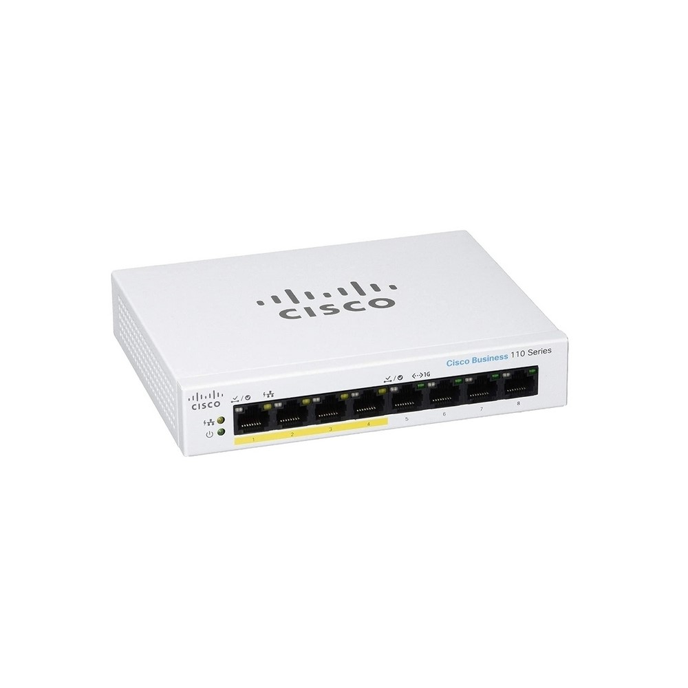 Disponibilidad: AgotadoSwitche Cisco CBS110 Unmanaged 8-port GE, Partial PoE, Desktop, Ext PS